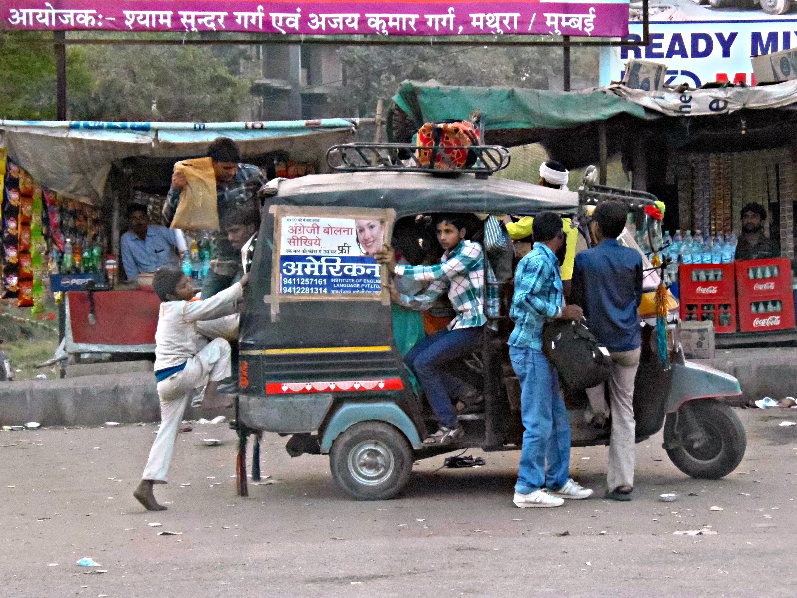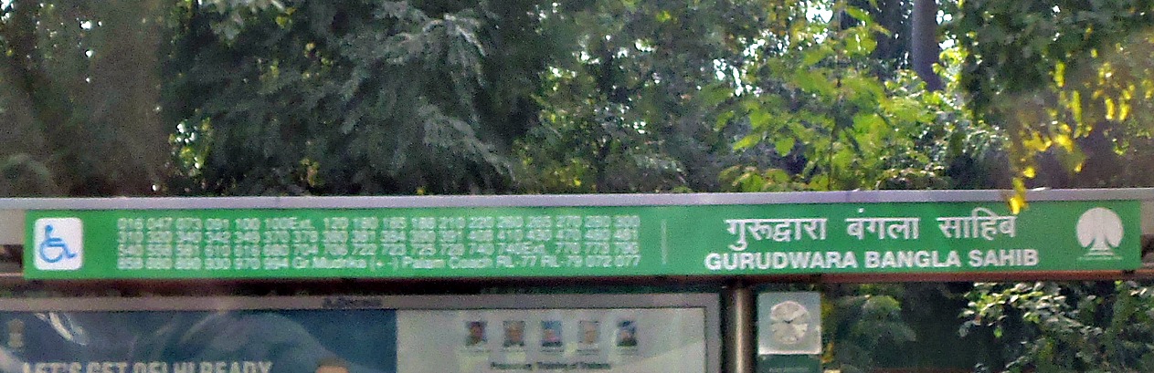 pár buszjárat Delhiben. Nézd a megálló tábláját!