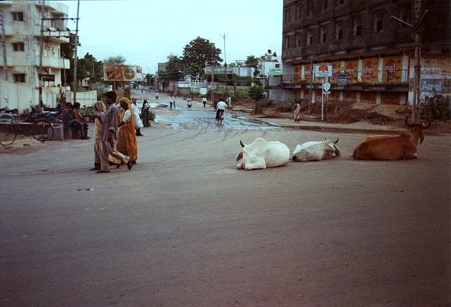csont-sovány tehenek valamilyen kaotikus egységben jelenítik meg a mai Indiát.
